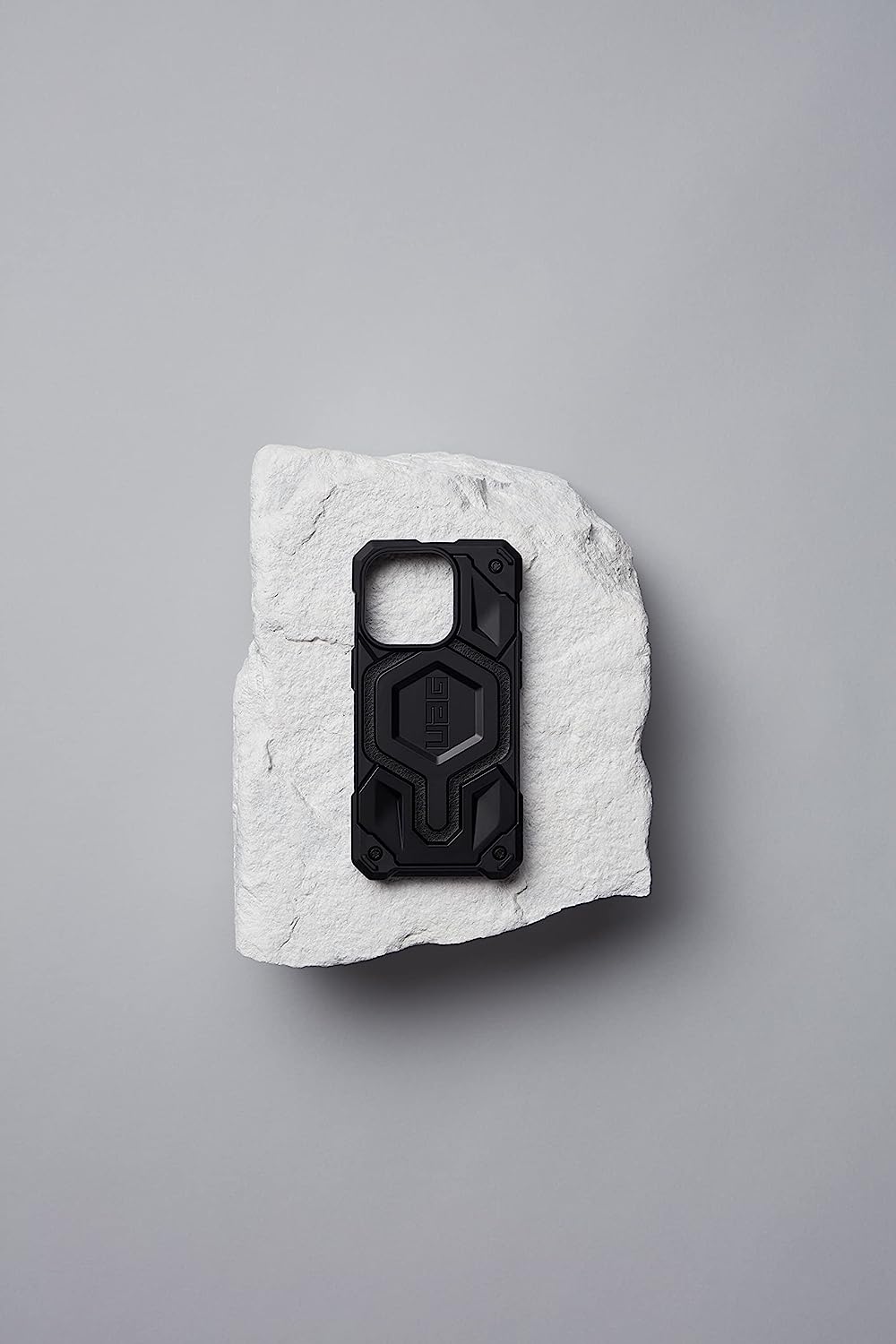 MULTI-LAYER PROTECTION: Our iPhone case is handcrafted with premium materials featuring a feather-light construction with 5 layers of protection starring UAG's signature armor frame, shock-resistant core, layered with carbon fiber/leather, a polycarbonate shear plate, alloy metal hardware, and impact-resistant rubber surround. COMPATIBLE WITH MAGSAFE CHARGING: Built-in magnet module that locks in-place for MagSafe charging compatibility. Compatible with Apple Pay. ENHANCED FUNCTIONALITY: Traction grip surrounds the perimeter for easy handling. Ultra-responsive oversized tactile buttons deliver a crisp, clean click-feel. Integrated lanyard anchor (lanyard not included) for on the go functionality. SCREEN & CAMERA PROTECTION: Soft raised screen surround to protect screen and raised camera bezel to protect the lens. MILITARY GRADE DROP PROOF TESTED: PC + TPU Chassis (TPU frame, PC backplate) & hex pattern for increased shock absorption. 25 ft. Drop Protection (7.6 meters). Meets 2X Military drop-test standards (MIL STD 810G 516.6)